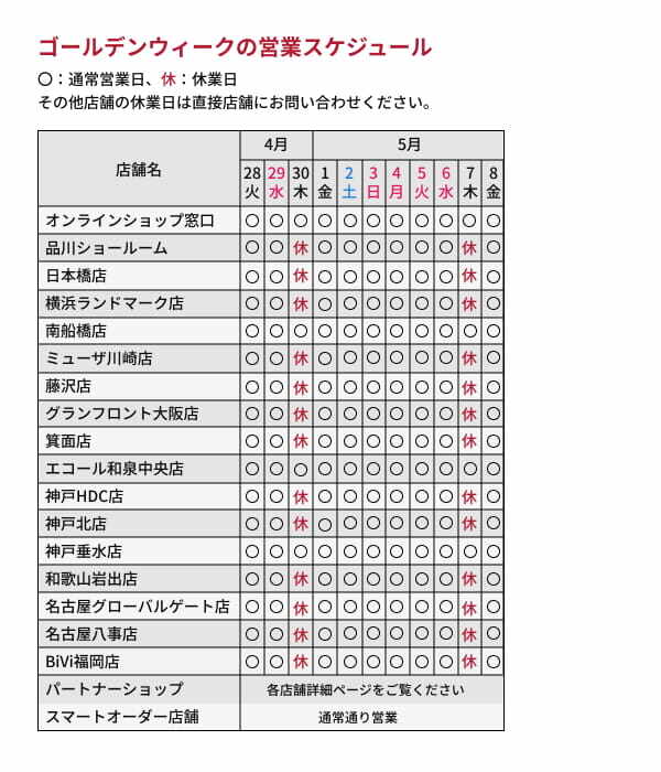 【店舗】GW・営業スケジュール