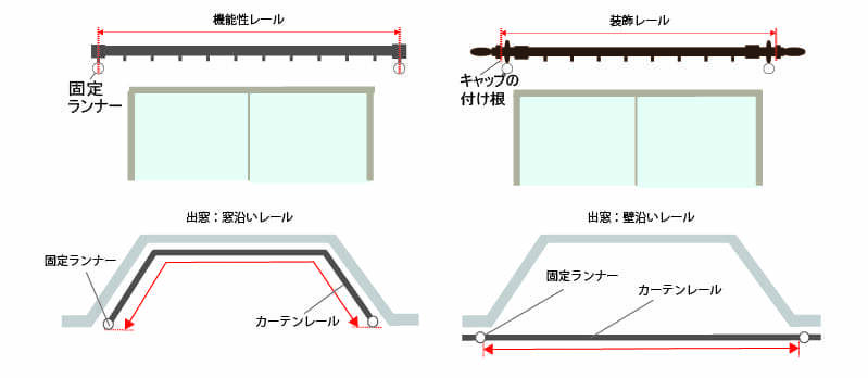 レールと窓の種類によって、カーテンサイズの測り方やオーダーサイズが異なりますのでまずは確認。