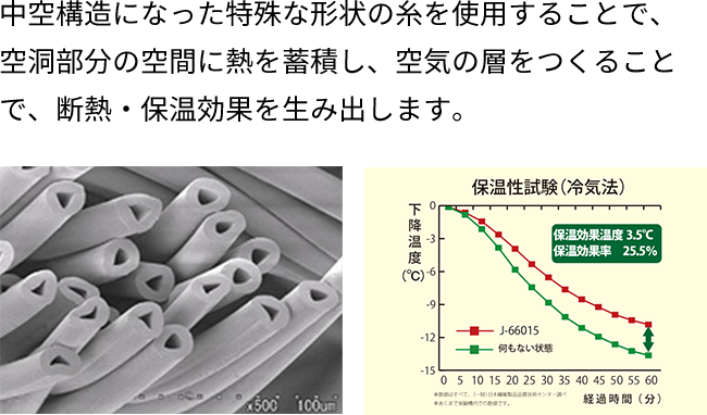 レース生地が空気の層を作ることで、冬場に、窓から入る冷気を防ぎ、室温の低下を抑えることができるレースです。