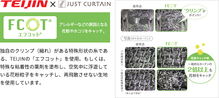 ジャストカーテンの花粉対策/蚊対策レースは、花粉や蚊の部屋への侵入を防ぎます。