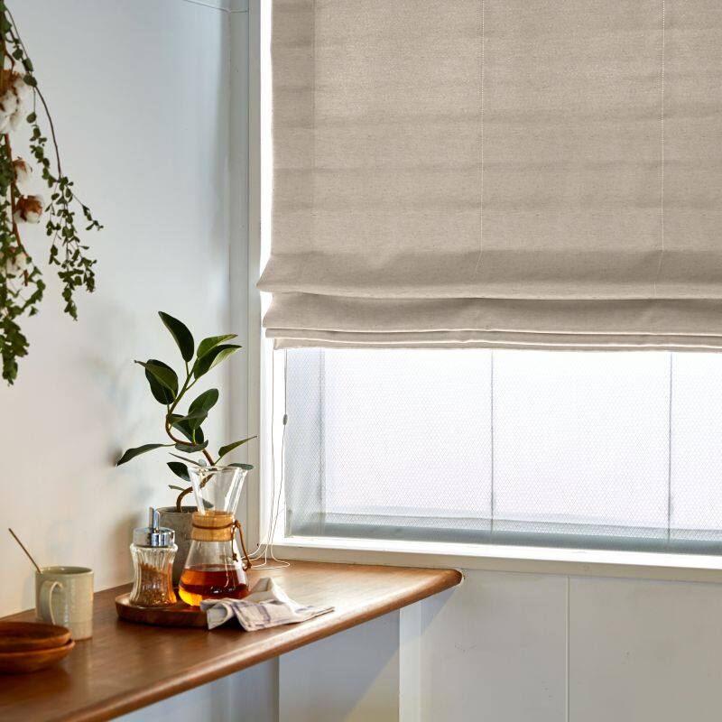 綿麻混で天然素材100%のナチュラルな雰囲気の生地です。綿に麻をミックスすることで「シャリ感」と「清涼感」をあわせ持った、おすすめのドレープカーテン。シンプルながらも素材感がおしゃれで、ナチュラル、モダン、カジュアルなテイストの部屋によく馴染みます。リビングや寝室など幅広い場所で使えるプレーンさも魅力です。カラー:ナチュラルな生成り色