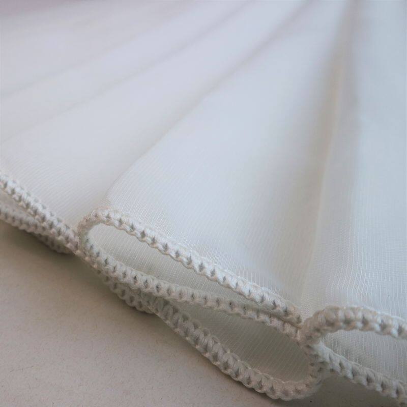 防炎機能のついたボイル生地のトルコレースカーテンです。やや縦方向にアクセントのテクスチャーが入ったプレーンなボイル生地なので、どのようなドレープにも合わせやすいおすすめの機能レースです。透け感が強めなので、たっぷりとボリュームを持たせて仕上げると高級感が増し、ホテルのようなスタイルにも最適です。家庭洗濯OK(ウォッシャブル)なので、お手入れも簡単。裾はウエイトロック仕様です。カラー:クリーンなホワイト色