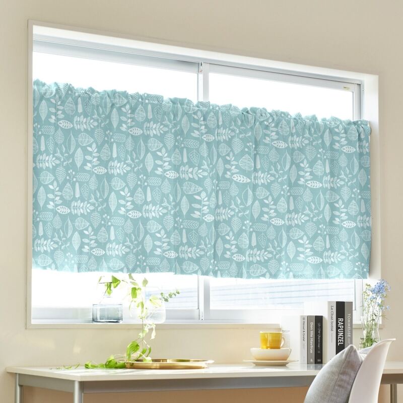 - シンプルリーフ カフェカーテン J-19237 ブルー