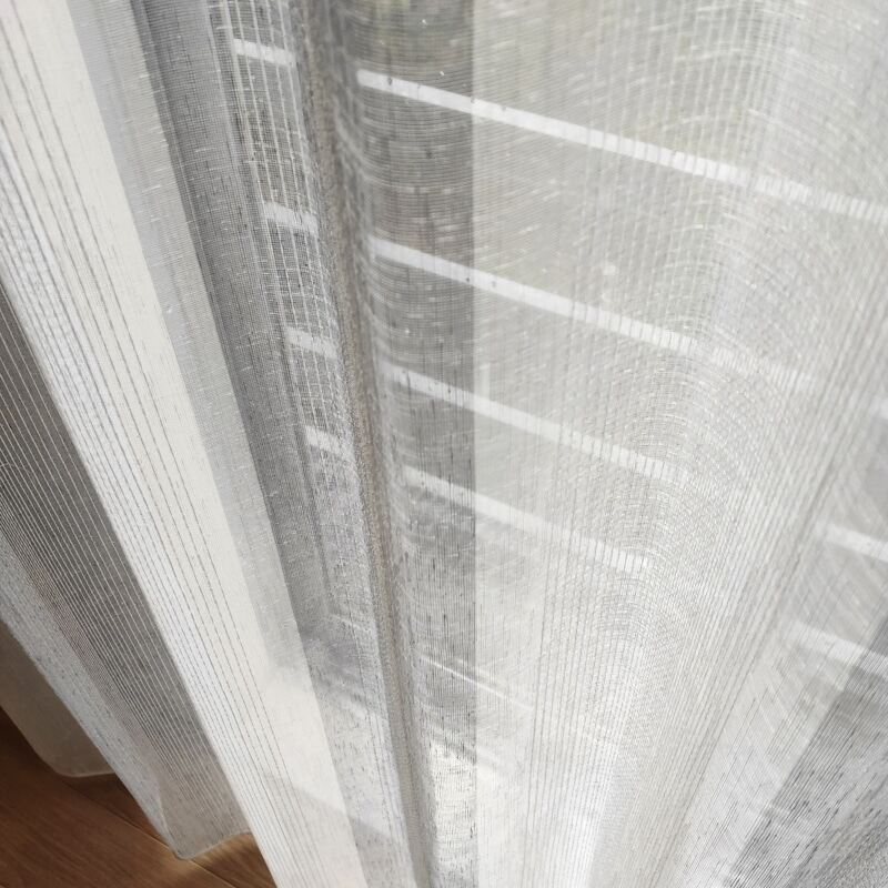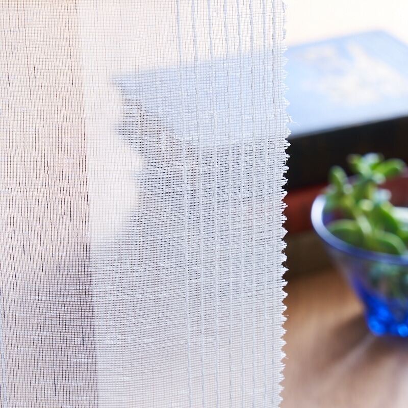 ホワイトとグレーの2色を使った、大胆な太ストライプ柄レースです。マニッシュでアーバンな雰囲気が魅力で、シンプルなモノトーンのインテリアがお好みの方には、特におすすめしたいアイテムです。(裾:ウェイトロック仕様)