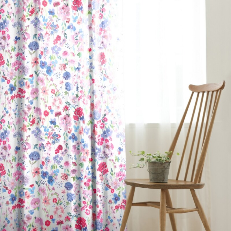 溢れんばかりに咲き誇るフラワーガーデンから、ふんわりと爽やかで甘い香りが漂ってきそうな、明るくハッピーな柄のプリントドレープです。ニュアンスカラーを中心とした様々なカラーは多様性を感じさせて、今の時代に寄り添う、やさしくてリラックス感のある空間づくりにぴったりなアイテムです。カーテンとしてお使いいただく場合は、上部をギャザー仕様にしてロマンティックな雰囲気でお使い頂くのもおすすめ。ベースの生地には、ざっくりとした風合いの生地を使用しているので、カジュアルやナチュラルテイストのお部屋のアクセントとしてよくマッチします。家庭洗濯OK(ウォッシャブル)なので、お手入れも簡単です。