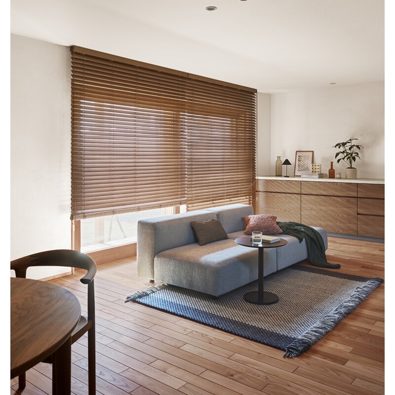 ブラインドの機能はそのままに、木のぬくもり、魅力を最大限に生かしたウッドブラインドです。木目が最も美しく見えるスラット巾や材質を厳選し、その加工工程にもこだわりました。天然木の美しさが際立ち、家具や建材のカラーに合わせやすく、トレンドカラーもカバーしたラインナップ。高品質なのにお求めやすい価格のウッドブラインドです。