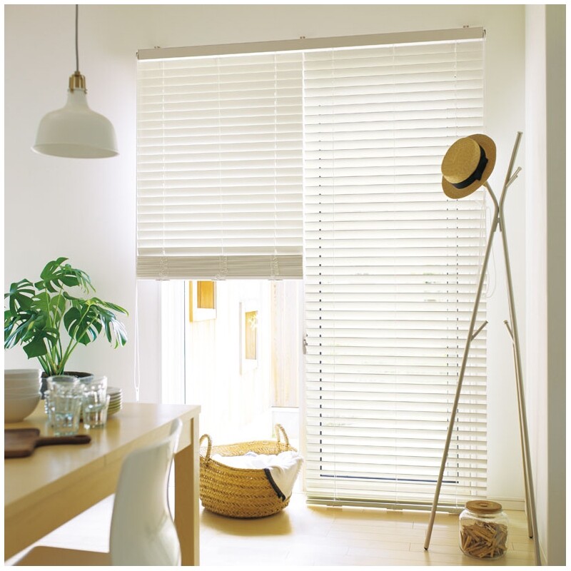 カーテンやスクリーンに比べて光の調整が得意なアルミブラインドで、なめらかで安定した調光が可能で、操作も簡単で使いやすい商品です。ホワイト系からダーク系まで、最近の建材カラーに合わせた木目調シリーズ。家具や床材との組み合わせコーディネートでもぴったりの色が見つかります。水回りでの設置におススメな浴窓タイプです。オプション金具でカーテンレールへの取付けも可能。