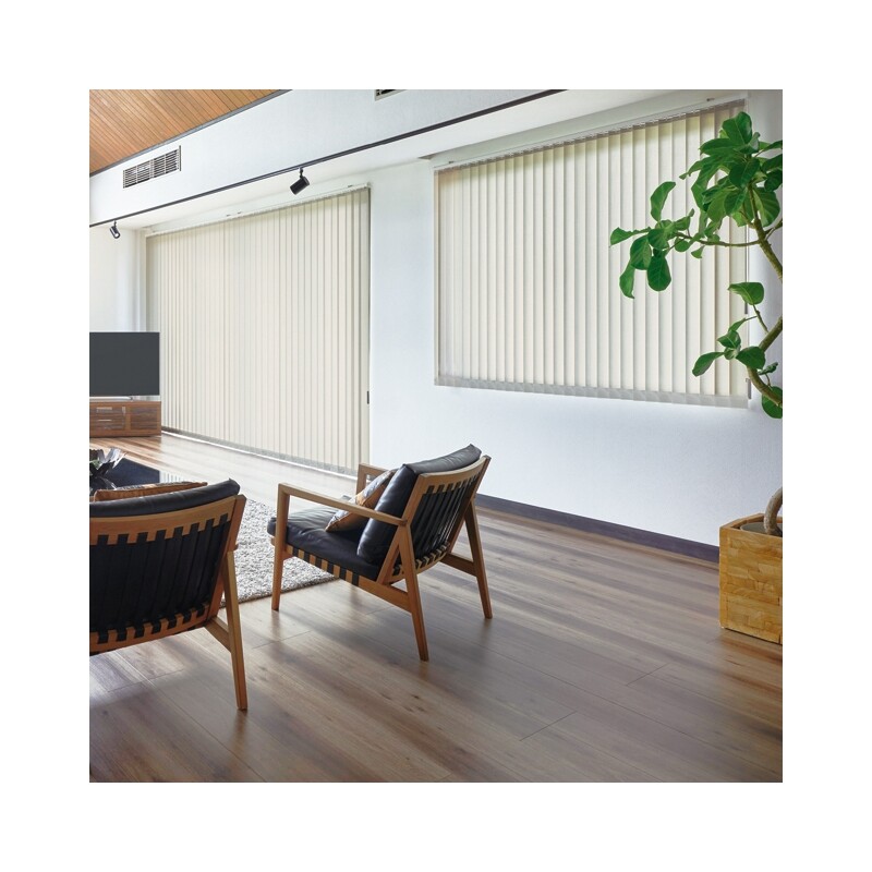 スタイリッシュな空間を実現するバーチカルブラインド(縦型ブラインド)。ストライプの美しい光を窓辺に映します。コットンのような自然な織りと優しい光の透過が特徴の生地です。プレーンで多彩なカラーの生地はお部屋を選ばずご使用いただけます。