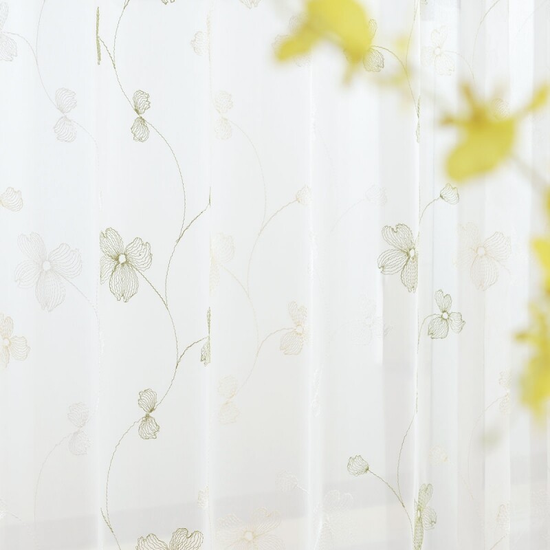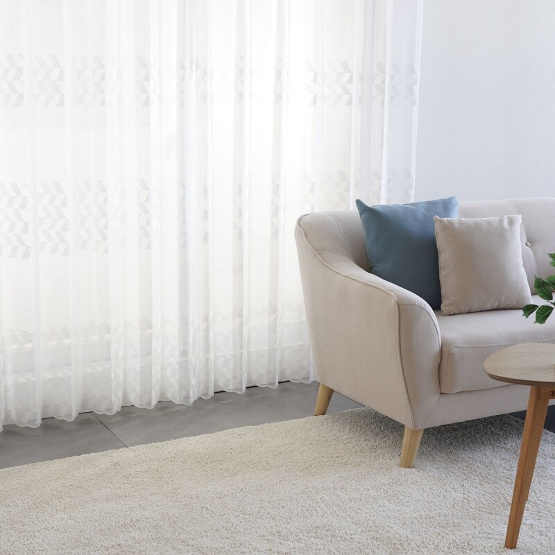 ナチュラルな風合いのスパンボイルのベース生地に、光沢のあるホワイトとニュートラルなグレー色のバイカラーづかいで、裾部分に市松模様の刺繍を施したレースです。エレガントスタイルにもモダンスタイルにも合わせられ、お部屋に適度な個性をプラスしてくれます。裾はウェイトロック仕様。家庭洗濯OK(ウォッシャブル)なので、お手入れも簡単。カラー:ニュートラルなグレー色