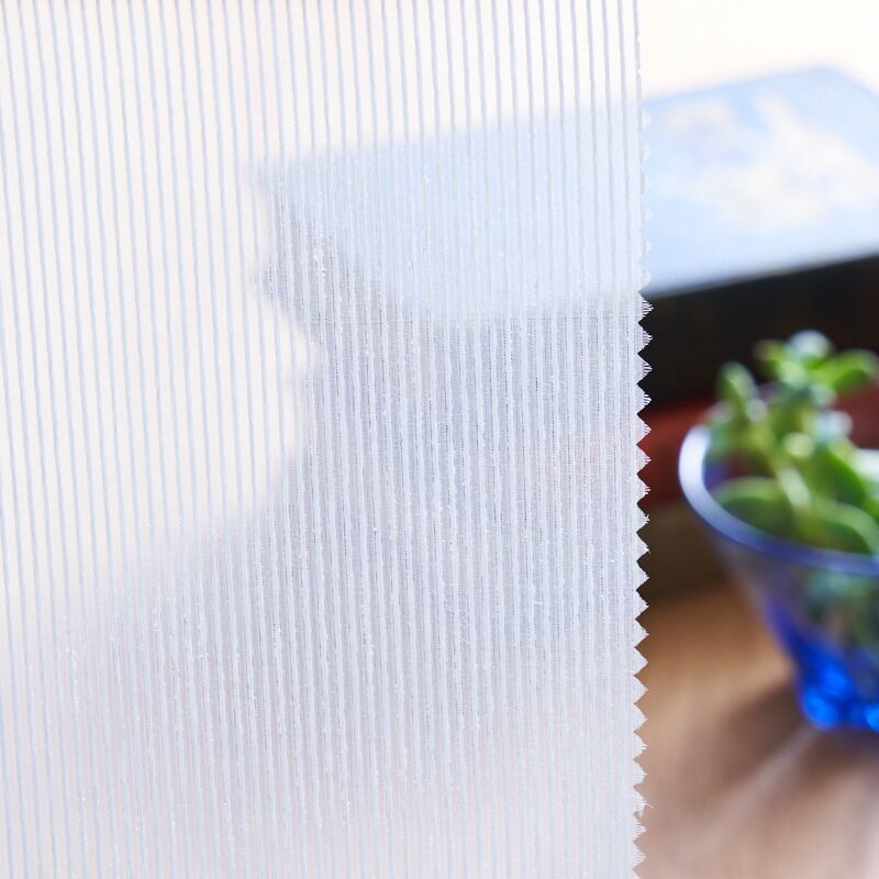 シャッリとした手触りと細いストライプが特徴の防炎レースです。どんなお部屋にも合わせやすく使いやすいです。