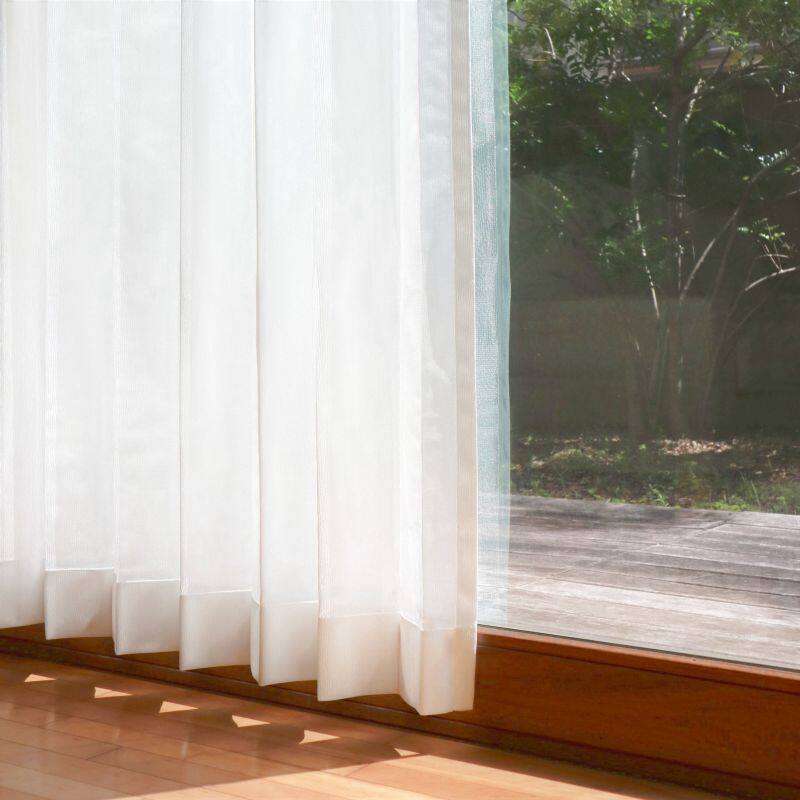 形態安定加工を施すことにより、カーテンの裾が広がらず、すっきりとまとまり、美しいウェーブを演出します(洗濯5回程度まで効果が持続)。