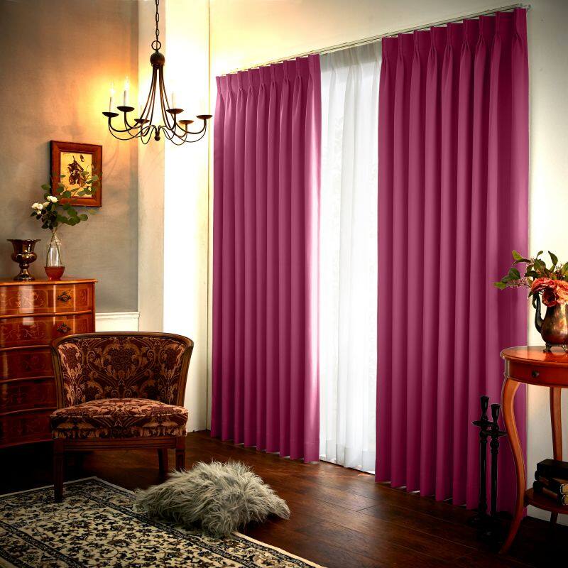 ツルっとした生地感が特徴的な遮光1級の無地。30色のカラーバリエーションでお好みの色が見つかります。防炎付き。