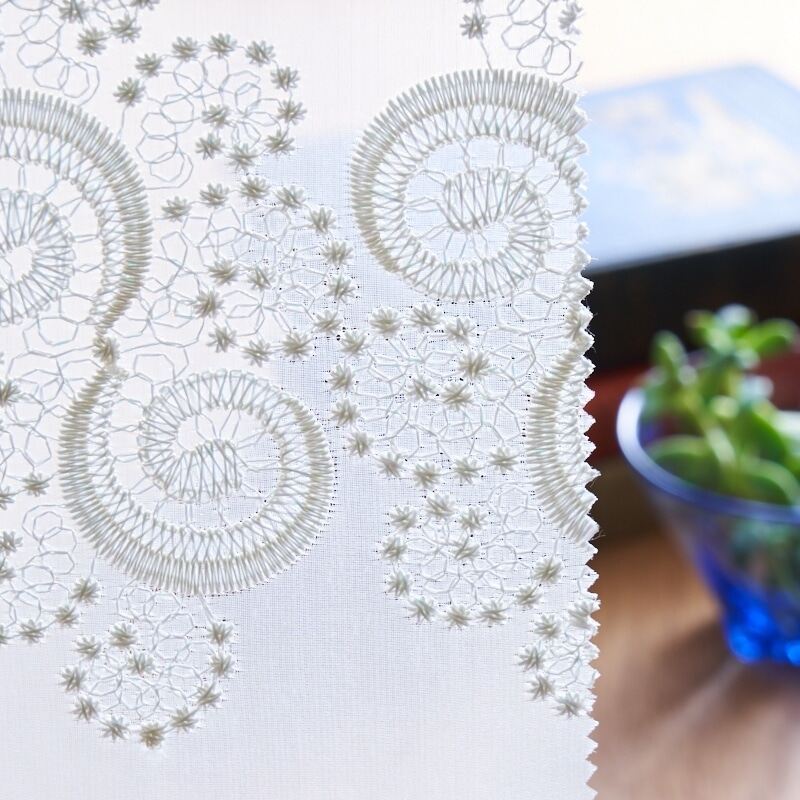華やかな刺繍に、フィルムヤーンも一緒に織り込まれています。そのため、風になびくたびにキラキラときらめき、お部屋を可愛くおしゃれにします。(裾:絵羽仕様)