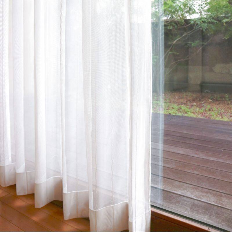 ミラー・UVカット機能付きのレースカーテンです。シンプルな縦ストライプの使いやすいレースです。