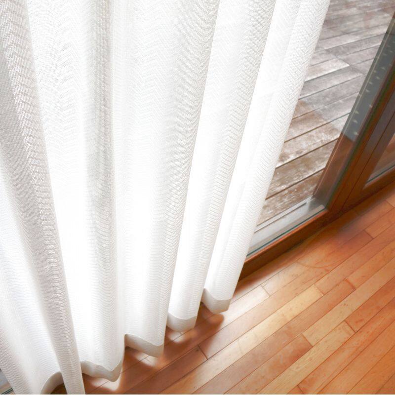ミラー機能付きレースカーテン。ヘリンボンの柄が表現されたざっくりとしたデザインのレースです。