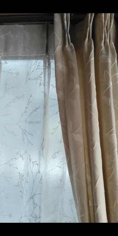 色合い、柄共に主張が強くなく白い壁とよくあい、自然な感じで違和感がないのがよい。 カーテン単体だと遮光2級ですが、裏地無しだと南側の部屋に付けるにはちょっと性能不足だと思います。 ちゃんと裏地を付ければ遮光性はかなり高く、太陽光がテレビ等の画面へ映り込むのをかなり軽減できて良いです。 安くは無いですが、そこまで高い値段でもないので、コストパフォーマンスも良いと感じました。