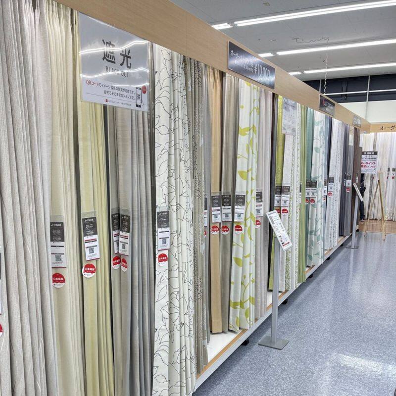 JUST CURTAIN が手掛けるフルオーダーカーテンが、1万円均一価格でご購入いただけます。 どの柄を選んでも価格が変わらないので、安心して柄を選ぶことができます。ご注文いただいたカーテンは、国内最大級のオーダーカーテン専門縫製工場で1点ずつ縫製いたします。先進的な全自動ミシンを多数導入しており、安心の国内縫製で高品質、なのに低価格を実現しています。 店頭のカーテンに付いているQRコードを読み込めば、スマートフォンからのご注文も可能です。「店頭で柄選び、自宅で注文」という新しいスタイルで、より便利でスマートなお買い物をお楽しみください。